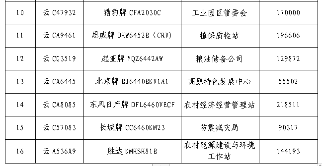 (一)拍賣車輛所有權(quán),詳見下表: