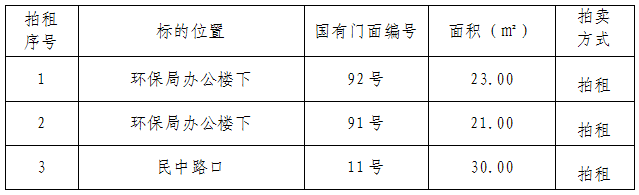 (二)拍租國有門面5年期使用權(quán),詳見下表: