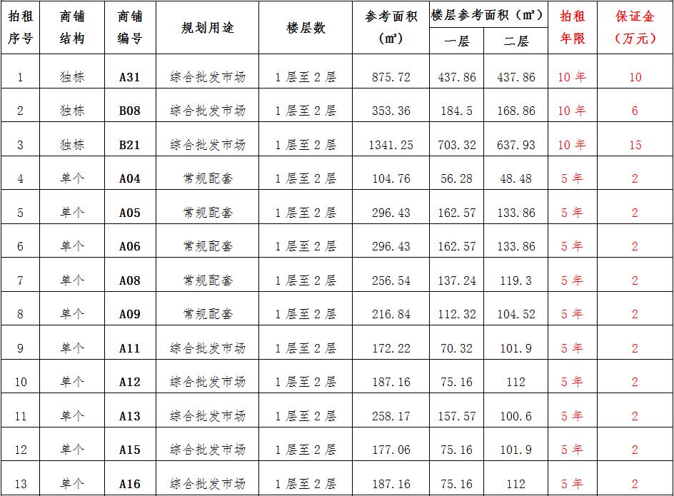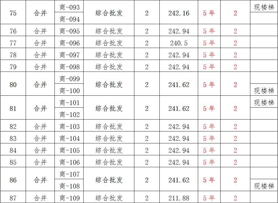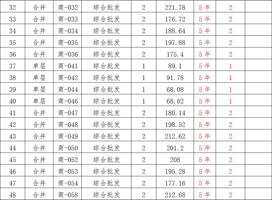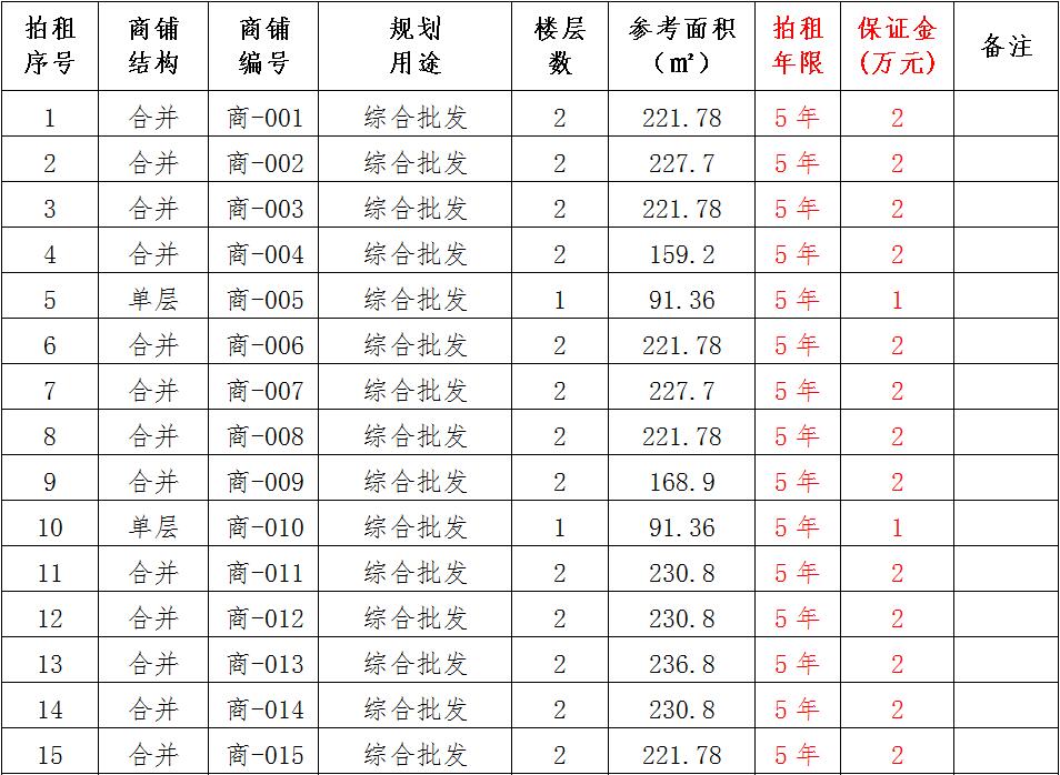 (一)拍租位于鎮(zhèn)雄縣南臺街道呢嚕坪安置點7棟獨立商鋪使用權(quán)。以棟為單位拍租。詳見下表:具體面積以現(xiàn)狀實測為準(zhǔn)。