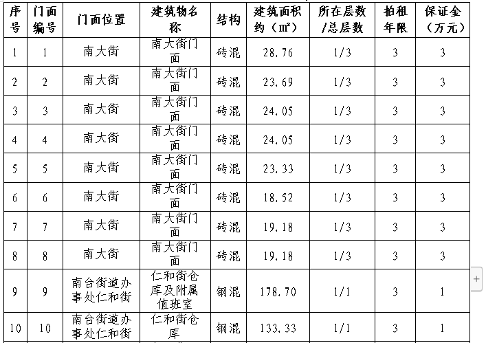 拍租15個(gè)國(guó)有門(mén)面使用權(quán),詳見(jiàn)下表: